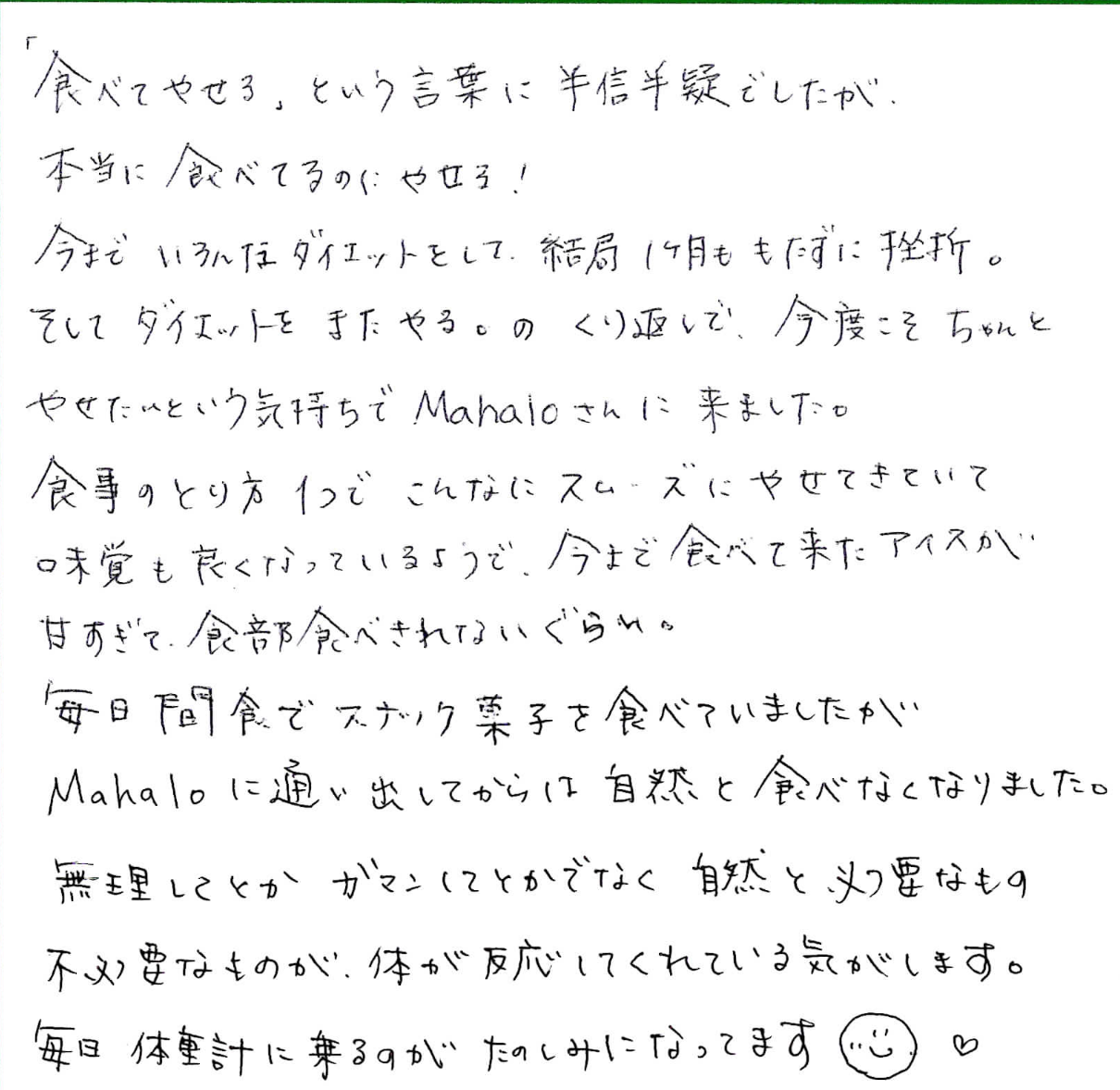 【お客様のお声】本当に食べてるのに痩せる!!//千葉・海浜幕張のダイエットエステ・痩せる食事とリンパ